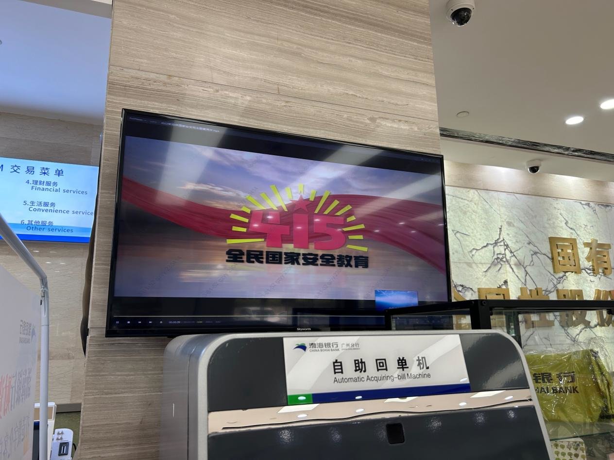 该行充分利用网点立体宣教优势,通过多种形式开展全民国家安全教育日普法宣传活动。在各营业大厅摆放安全教育宣传资料,方便客户取阅并及时了解国家安全法律法规的内容、实施意义等。通过营业网点LED显示屏滚动播放国家安全宣传标语,并在营业大厅显眼处张贴国家安全相关宣传海报,在营业大厅的数字电视循环播放国家安全法律公益宣传视频,营造全社会学习国家安全相关法律法规,践行总体国家安全观的良好法治氛围。同时,在营业网点设立咨询服务台,由工作人员向客户讲解国家安全知识,提升社会大众对国家安全法律的认识,加强群众的学法、守法、护法意识。