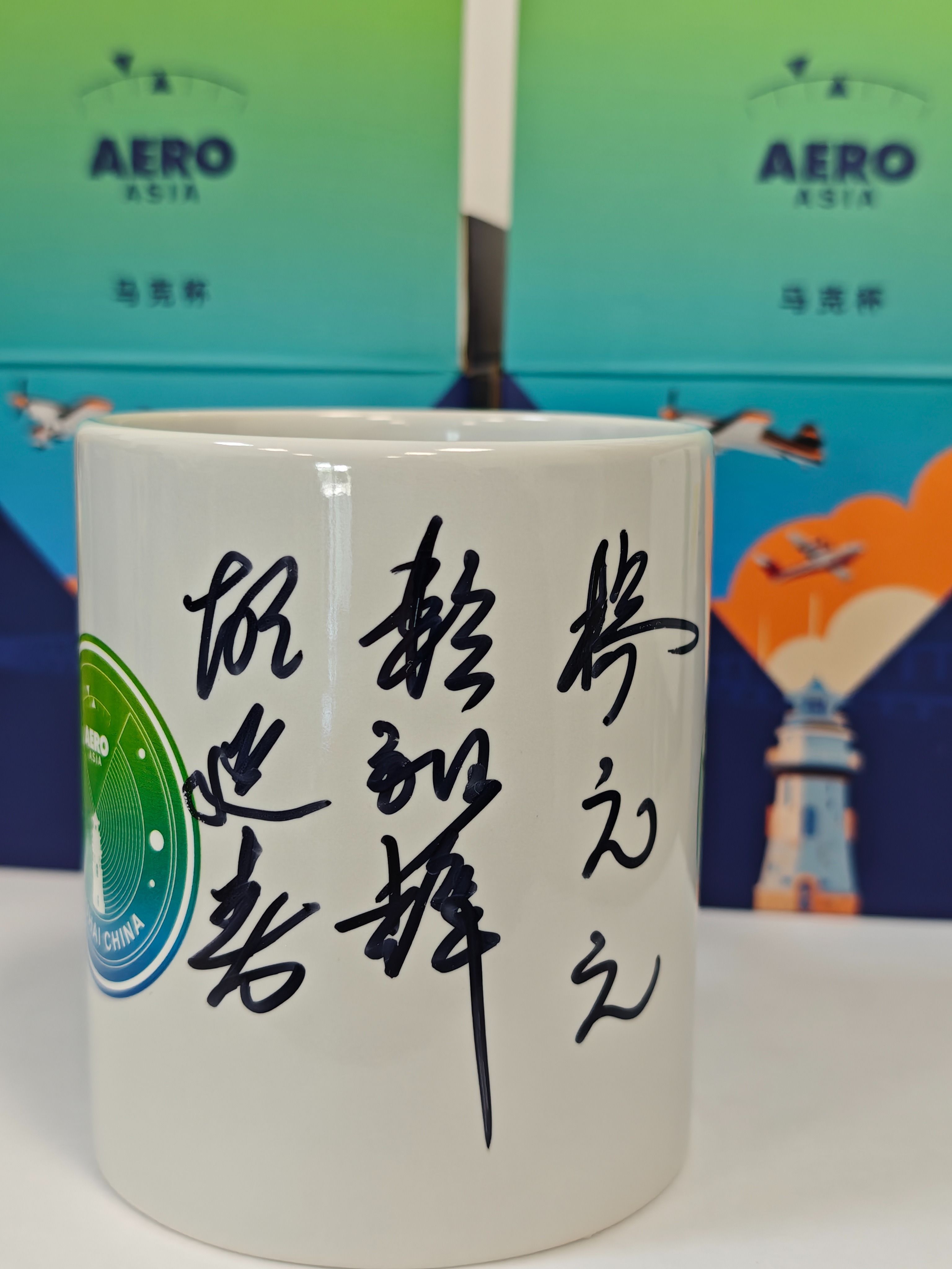 中国民航总局原局长杨元元与红星飞行表演队成员共同签字的通航展官方文创马克杯,将以满赠形式回馈通航迷。该签售版马克杯限量10个,展会期间购物满500元的前10名观众,即可获赠这款珍贵的签字马克杯。