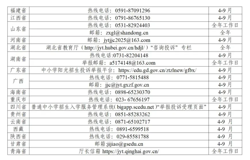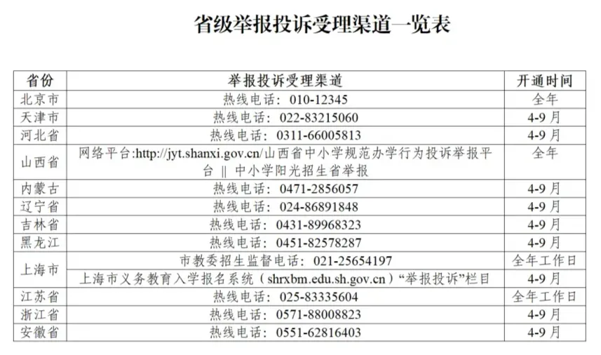 据悉,教育部将于2026年4—9月在中国教育督导微信公众平台设立“中小学违规招生问题”专栏,接受社会监督。要求各地教育行政部门畅通举报投诉受理渠道。县级教育行政部门须设立专门的招生入学热线并向社会主动公开。对群众反映的问题要建立台账、逐一认真核查处置。