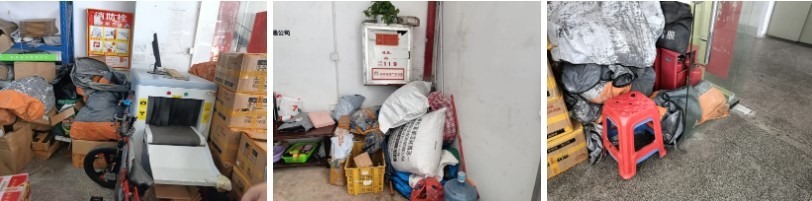 存在问题:1.公共门厅停放电动自行车;2.疏散楼道堆放杂物。